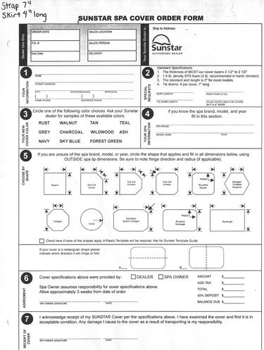 Hot Tub Cover Order Form - Seasonal Specialty Stores